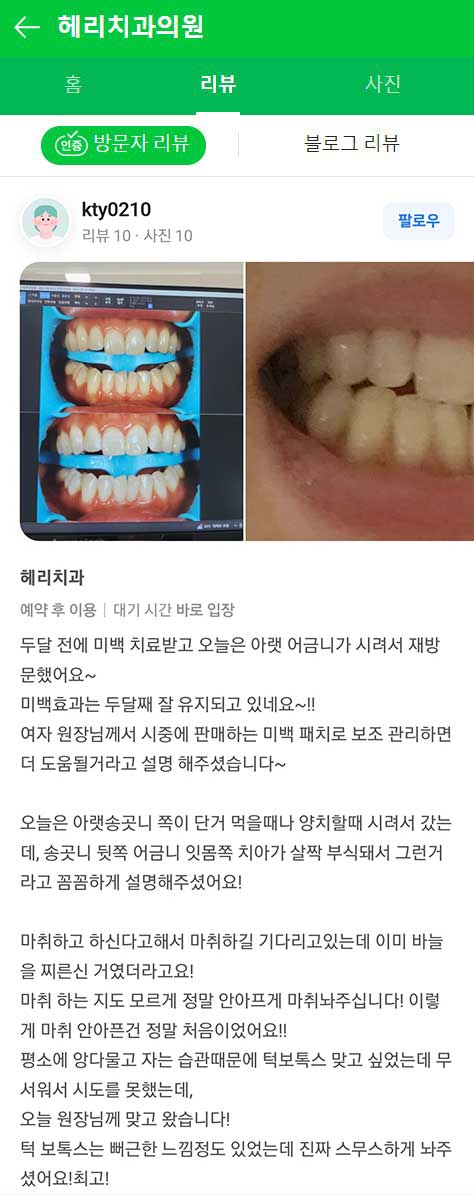 전체보기임플란트치아교정심미보철일반진료이용후기 BEFORE & AFTER 미백치료도 아주 만족스러운 치과예요~^^ 일반진료 작성자 강남헤리치과 작성일 2025-08-16 20:14 출처 : 네이버리뷰 https://naver.me/GCvqce9E 좋아요 0 싫어요 0 인쇄 목록보기 이전 다음 Powered by KBoard