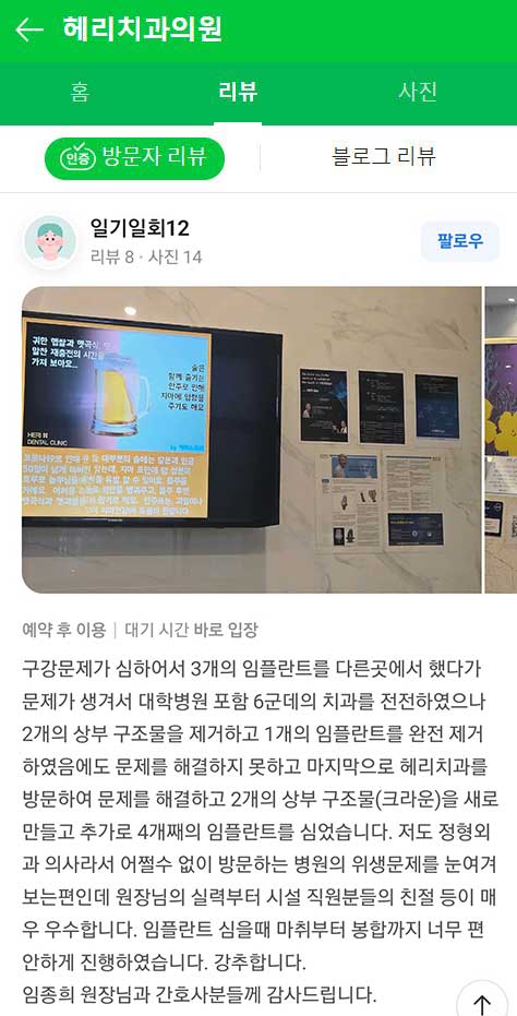 전체보기임플란트치아교정심미보철일반진료이용후기 BEFORE & AFTER 정형외과 의사인 제가 이 치과를 추천하는 이유는... 임플란트 작성자 강남헤리치과 작성일 2025-08-16 20:27 출처 : 네이버 리뷰 https://naver.me/GCvqce9E 좋아요 0 싫어요 0 인쇄 목록보기 이전 다음 Powered by KBoard