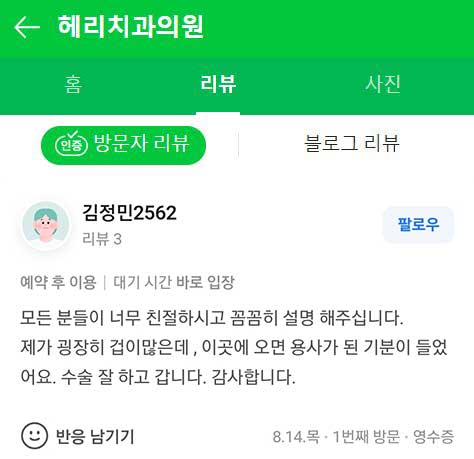 전체보기임플란트치아교정심미보철일반진료이용후기 BEFORE & AFTER 겁많은 분들도 아무 걱정할 필요없는 치과~ 임플란트 작성자 강남헤리치과 작성일 2025-08-16 20:33 출처 : 네이버리뷰 https://naver.me/GCvqce9E 좋아요 0 싫어요 0 인쇄 목록보기 이전 다음 Powered by KBoard