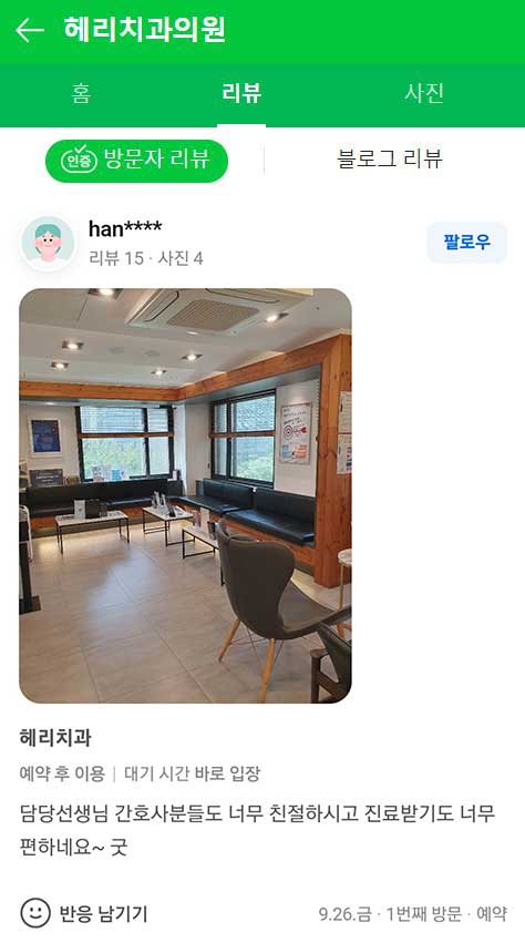 전체보기임플란트치아교정심미보철일반진료이용후기 BEFORE & AFTER 너무 친절하시고 진료받기도 너무 편하네요~ 굿! 치아교정 작성자 강남헤리치과 작성일 2025-09-27 12:19 출처 : 네이버리뷰 https://naver.me/GCvqce9E 좋아요 0 싫어요 0 인쇄 목록보기 이전 다음 Powered by KBoard