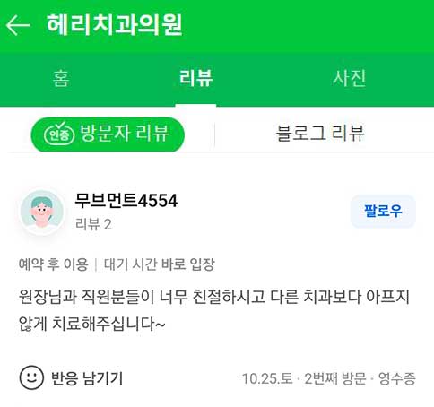 전체보기임플란트치아교정심미보철일반진료이용후기 BEFORE & AFTER 다른 치과보다 아프지 않게 치료해 주세요~^^ 일반진료 작성자 강남헤리치과 작성일 2025-10-28 18:49 출처 : 네이버리뷰 https://naver.me/FA2FUvHD 좋아요 0 싫어요 0 인쇄 목록보기 이전 다음 Powered by KBoard